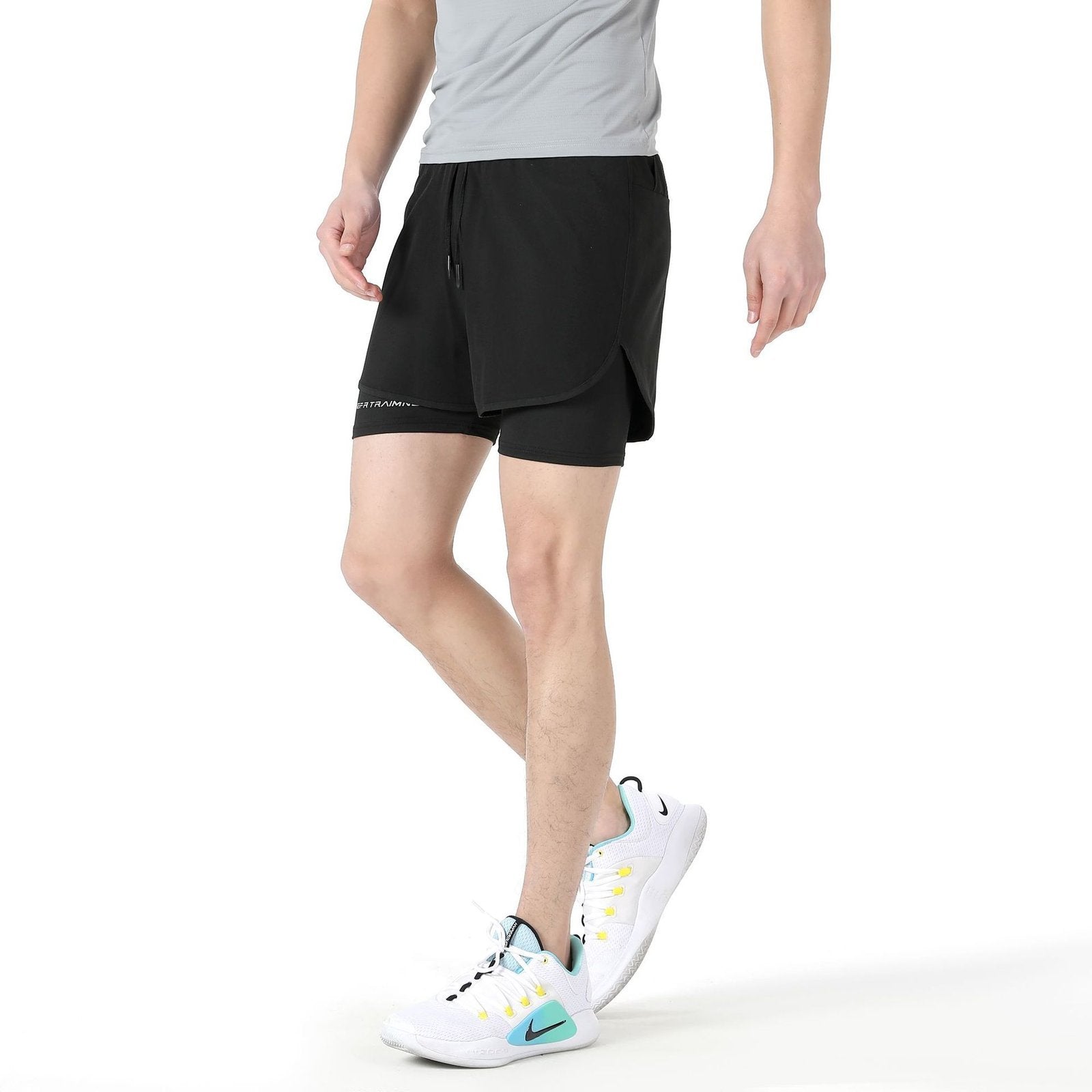 Sports ice silk quick-drying shorts men's double-layer false two-piece summer thin section breathable leisure running training
